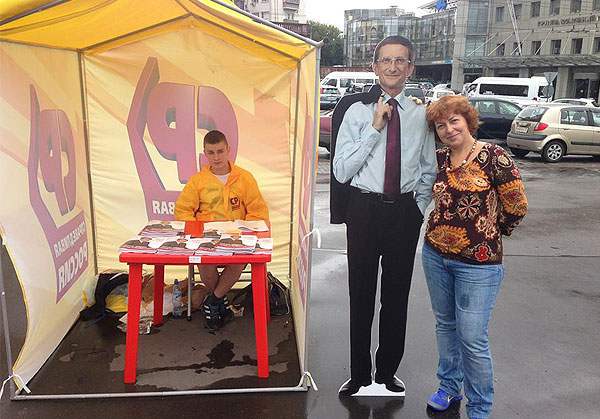 Предвыборный пикет Левичева. Фото: spravedlivo.ru На взгляд Агеева, именно ставка на умную кампанию позволит кандидату от эсеров победить того же Навального, и нынешний нулевой рейтинг они всерьез не воспринимают. Руководитель штаба также сообщил, что по Москве уже стоит несколько сотен палаток Левичева, они «визуально красивые», и в них работают члены партии, которые лично знают кандидата от справороссов. Кроме того работают примерно 1100 агитаторов, раздающих газеты и другой материал.