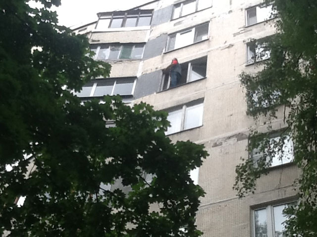 По сообщению РИА "Новости", мужчина выглядывает из окна квартиры на седьмом этаже.