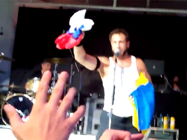 Напомним, ранее в интернете появилась видеозапись выступления группы в Одессе в среду, на которой видно, как бас-гитарист Эвил Джаред Хасселхофф "подтирается" российским триколором, засунув его себе в штаны спереди и вытащив сзади. После этого группа должна была выступать в России, на фестивале KUBANA, но была исключена из участников и музыканты покинули пределы РФ. В аэропорту Анапы, откуда они улетали, их закидали помидорами и тухлыми яйцами. Более серьезных последствий удалось избежать благодаря вмешательству полиции.