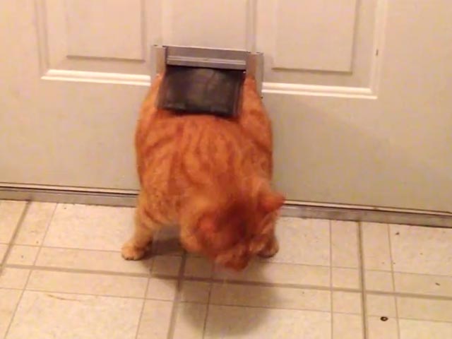В интернете обнаружен новый Гарфилд: 12-килограммовый кот еле протискивается в дверцу для питомцев (ВИДЕО)