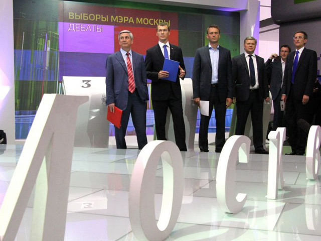 Как и в прошлый раз, из шести кандидатов в прямом эфире канала "Москва-24", встретились пятеро, так как врио мэра Москвы Сергей Собянин отказался в них участвовать. Навальный начал свою речь с обличения Собянина, который, по его словам, в отместку за расследование о квартире его дочери, решил скомпрометировать кандидата от партии "РПР-Парнас".