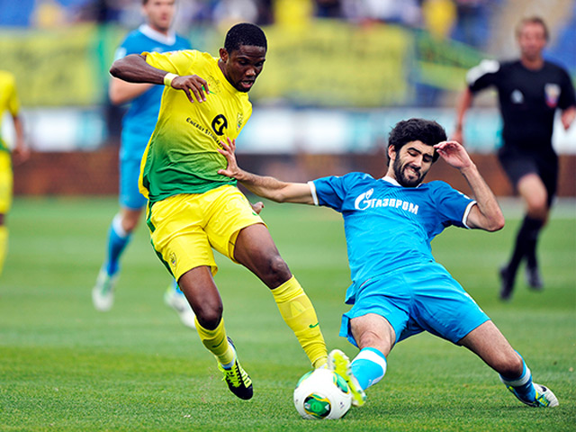 В матче 5-го тура российской премьер-лиги "Зенит" разгромил "Анжи" со счетом 3:0. У питерцев отличились Роман Широков, Халк и Кристиан Ансальди, дебютировавший в составе сине-бело-голубых.