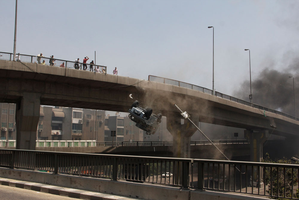 Протестующие столкнули полицейскую машину с моста на востоке Каира