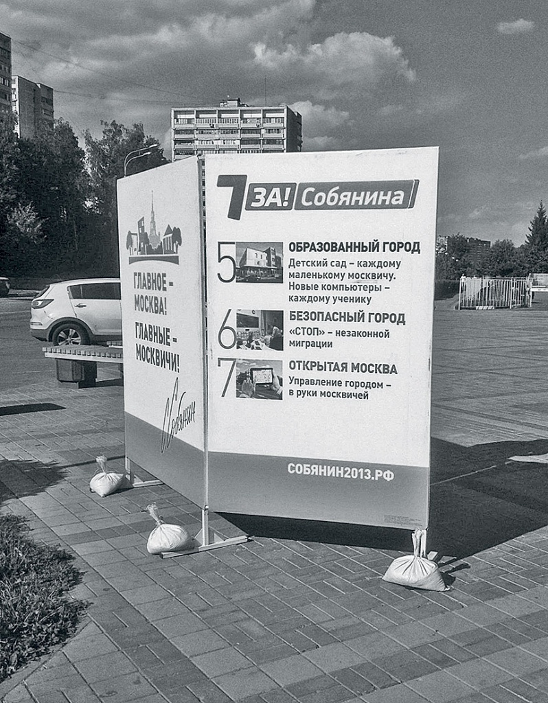 Из подъезда пятиэтажки, перед которой идет стройка, выходит секретарь избиркома и член партии «Единая Россия» Валентина Петровна — энергичная женщина в малиновых штанах и белой рубашке. «Тут низковато — вся вода уходит под дверь, у порога лужа. Немного поднимите асфальт», — бодро командует она рабочим. «У нас за Путина всегда хороший процент был, набирали больше семидесяти, — с гордостью, будто хвалится хозяйственными достижениями, отмечает Валентина Петровна. — Буду голосовать за Собянина. Все должны работать вместе. Зачем разделяться: здесь «Единая Россия», здесь коммунисты…»