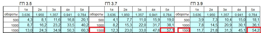 "Показания" тахометра при этом - около 1400 об/мин. Такая пара значений (1400 об/мин и скорость около 57 км/час) если и возможна, то только на ПЯТОЙ передаче. И то с главной парой 3,7.