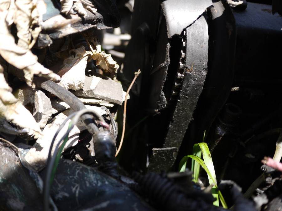 Самое главное - это состояние ремня ГРМ. При резкой остановке двигателя (например, при блокировке колёс на ходу) ремень рвётся. На данном автомобиле он целый. Более того, на ремне нет продольных повреждений - даже царапин нет! Если бы ремень вращался (если бы двигатель работал, то ремень бы вращался), то при воздействии на ремень любой, даже малой силы, привело бы к появлению продольных царапин или разрывов. И уж точно на движущемся ремне не могли бы появиться такие повреждения: