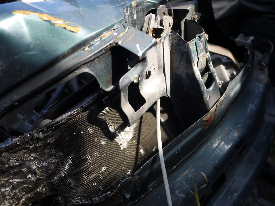 Почему, отчего так смяло крышу? Думаю, что BMW-X5 после удара "заехал" на ВАЗ и ударил в крышу. При лобовом столкновении движущихся машин ВАЗ просто отбросило бы назад - и не сломало бы пополам, не загнуло бы буковй "С". Видимо, был упор сзади - например, бордюр. Задняя балка вырвана и расположена сейчас практически вдоль продольной оси автомобиля.