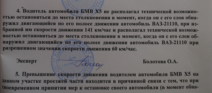 И, напомню, по мнению следствия, водитель автомобиля ВАЗ-21110 выполнял манёвр обгона. На пятой передаче. На скорости 57 км/час.