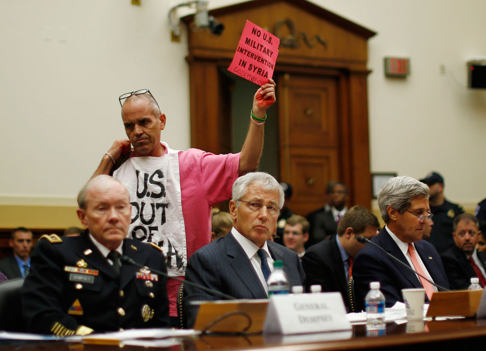 Если в Стрельне Барак Обама пытался заручиться поддержкой мирового сообщества, то первая «битва» сирийской кампании-2013 произошла на Капитолийском холме 3 сентября. С одной стороны в ней участвовали 18 членов сенатского Комитета по иностранным делам, с другой — госсекретарь Джон Керри, министр обороны Чак Хейгел и председатель Объединенного комитета начальников штабов (ОКНШ) генерал Мартин Демпси. Захватывающий поединок длился три с половиной часа в прямом эфире главных американских телеканалов.