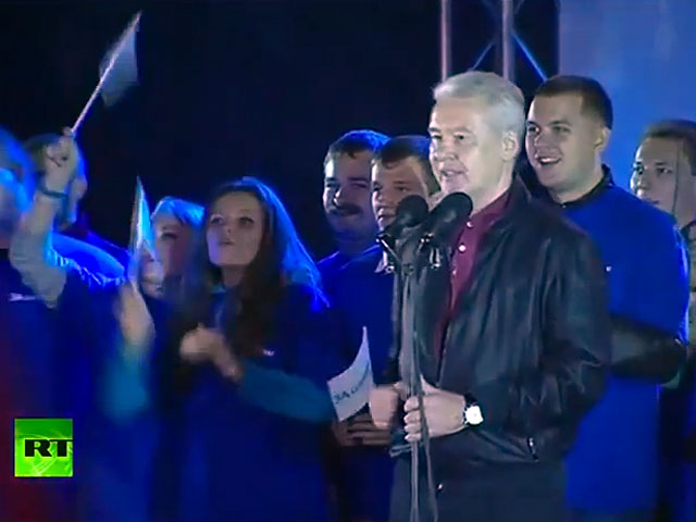 Собянин принял поздравления с победой на концерте, внезапно ставшем митингом его сторонников