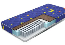 На рынке представлены многослойные комбинированные матрасы из синтетики и натурального материала. Например, кокос (койра), который получают из волокон кокосового ореха, по своей природе обладает бактерицидным свойством. Он не подвержен гниению и не вызывает аллергических реакций. В детских матрасах часто используется кокосовая плита, с пропиткой на основе натурального или искусственного латекса. Именно кокос способен обеспечить необходимый уровень жесткости. Кокосовый матрас с небольшим слоем войлока подходит для детей до полугода, но затем лучше выбрать вариант помягче, в котором чередуются слои латекса и кокоса.
