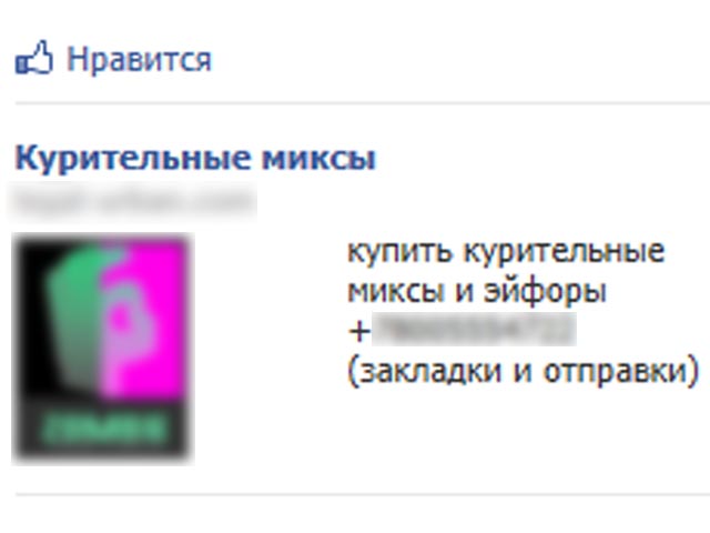 Пользователи социальной сети Facebook зафиксировали сегодня появление на своих страницах рекламы курительных смесей. Реклама перенаправляет на сайт, на котором можно приобрести курительные смеси, в том числе оптом. Причем продавец предлагал приобрести смеси в разных городах России.