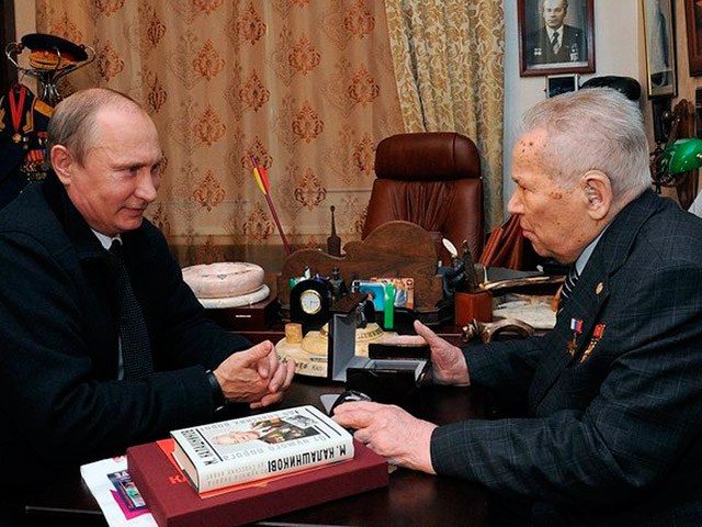Непосредственно перед встречей Путин посетил легендарного создателя автомата Калашникова, приехав к оружейнику домой и справившись о его здоровье, сообщил пресс-секретарь президента Дмитрий Песков. Путин подарил известному конструктору президентские часы, а Калашников подарил главе государства свои книги.
