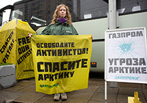 С четверга экологическая организация проводит одиночные пикеты у центрального офиса "Газпрома" в Москве. Активисты будут сменять друг друга на этом посту, сообщают в Greenpeace. В пятницу к пикету офисов "Газпрома" и зданий российских посольств присоединятся активисты по всему миру.