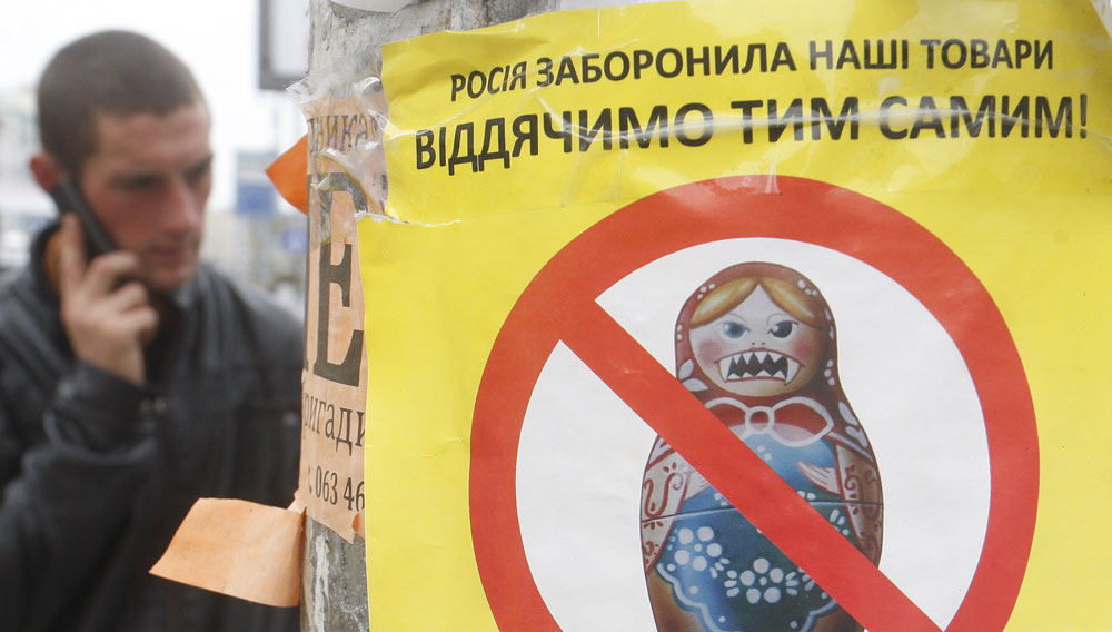 Украина, Киев, 13 сентября 2013 г. Листовки призывают бойкотировать российские товары