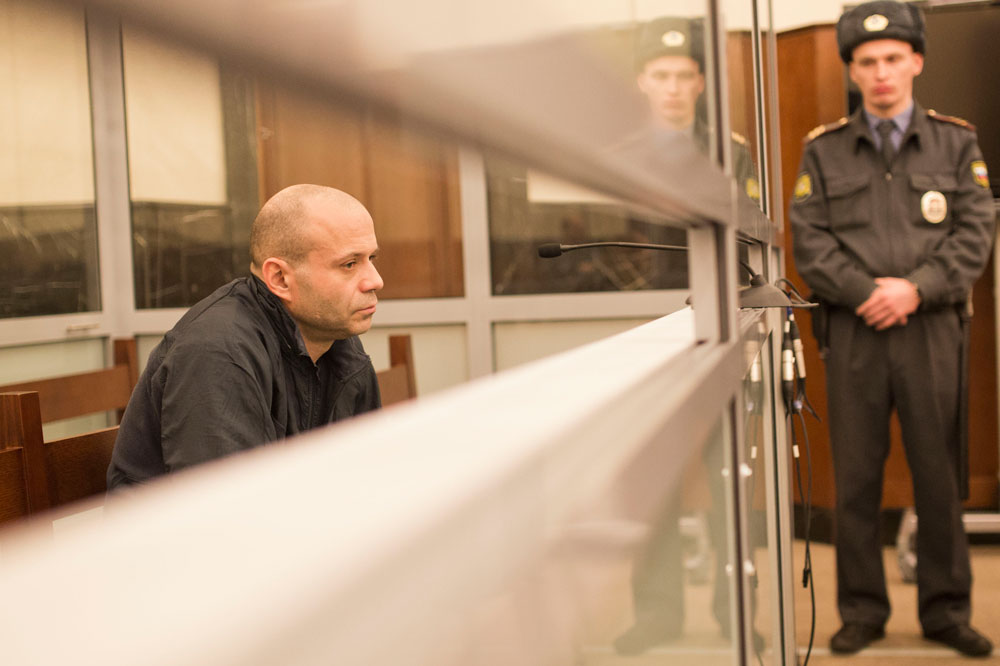 Рустам Махмудов, над которым висит самое страшное обвинение, в начале процесса выглядит вполне спокойным. Он невысокий, плотно сбитый, много улыбается. Правда, когда приводят Дмитрия Павлюченкова* и на белом экране во всю стену появляются кадры, сделанные камерами дома на Лесной улице, где жила и была убита Политковская, Махмудов встает и начинает нервно постукивать ногой, а руки беспокойно запихивать в карманы.