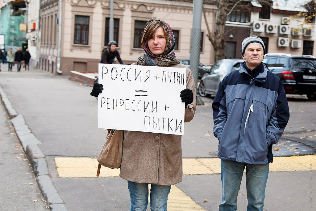Полина Стародубцева, 28 октября 2012 г. на одиночном пикете в Москве