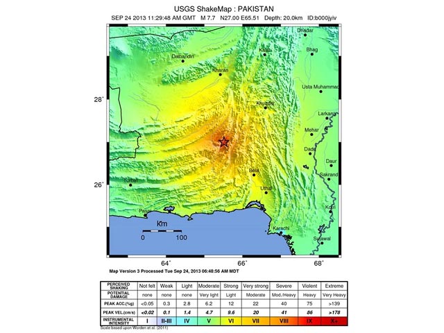 На юго-западе Пакистана в 16:29 (15:29 по московскому времени) было зафиксировано землетрясение магнитудой 7,7 (по некоторым данным 7,8), сообщает сайт Геологической службы США. Чуть позже там же произошел подземный толчок магнитудой 5,9.
