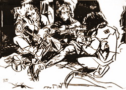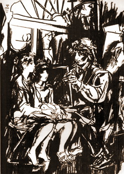 В первой половине 1990-х годов – в эпоху лишений, прикровенного голода и явного, выставленного наружу преступного террора на каждом шагу – Валерий Куликов работал как портретист и рисовальщик с натуры посреди Невского проспекта, вздыбленного и очень быстро менявшегося. Сотни живых непохожих друг на друга людей прошли перед его острым взором, попали под угольный грифель, цепкий и верный. Но не гламурным «манекенам», довольно скоро вышедшим на свет, служил художник в своё страшное время, не на их коммерческое портретирование расходовал свой дар.