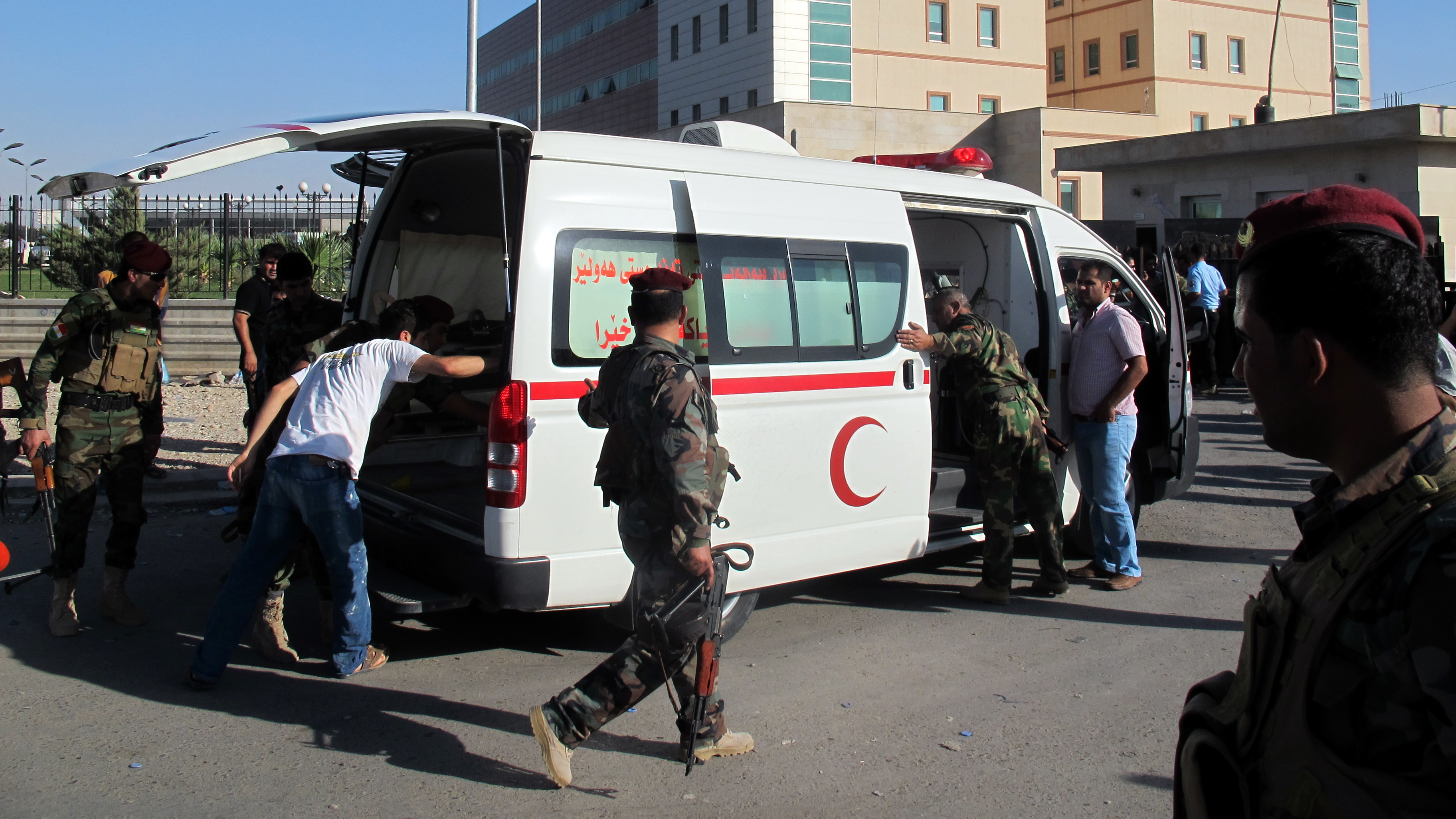 Машина "скорой помощи" увозит раненых в результате нападения в Ирбиле, 29 сентября