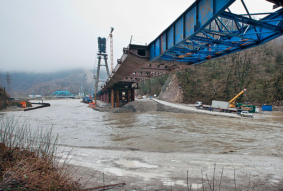 Вдоль Мзымты идет строительство совмещенной автомобильной и железной дороги Адлер — Красная Поляна, которая считается ключевым объектом олимпийской инфраструктуры. Ее стоимость — $9,4 млрд за 48 км путей…