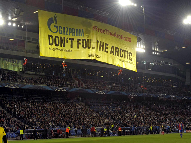 Активисты экологической организации Greenpeace прервали матч группового этапа Лиги чемпионов. Инцидент произошел во вторник в швейцарском городе Базель, где одноименный клуб принимал немецкий "Шальке-04".