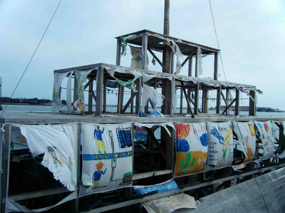 А вот фотографии, снятые на задах острова Джудекка в Венеции. Так выглядел венецианский вариант кабаковского «Корабля толерантности» через несколько месяцев после той биеннале 2007 года, когда фанфары отгремели, гонорары были выплачены, пресс-конференции закончены, а интервью розданы.