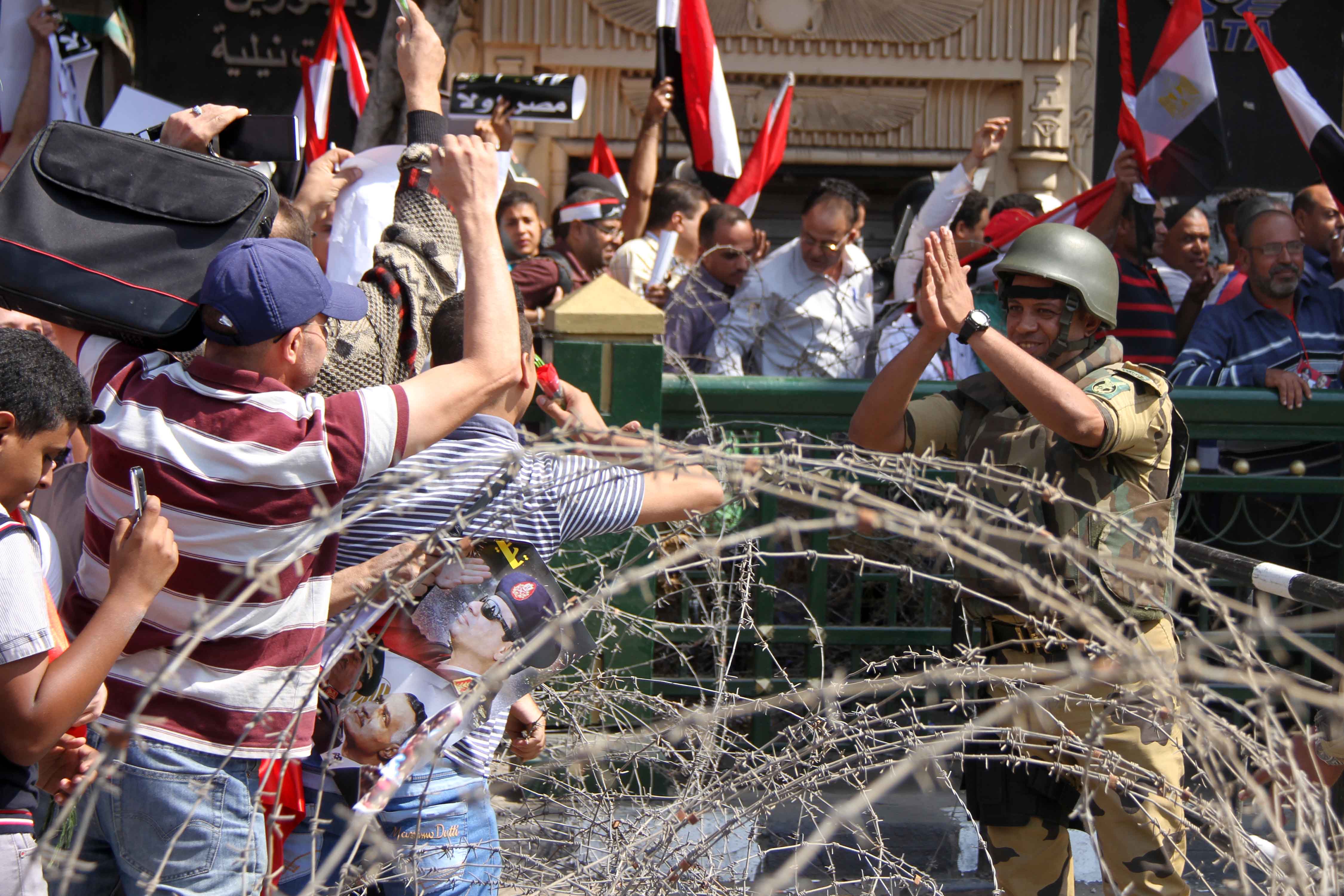 В столице Египта полиция применила слезоточивый газ, чтобы оттеснить сторонников Мурси с площади Тахрир в центре Каира, где обычно собираются демонстранты.
