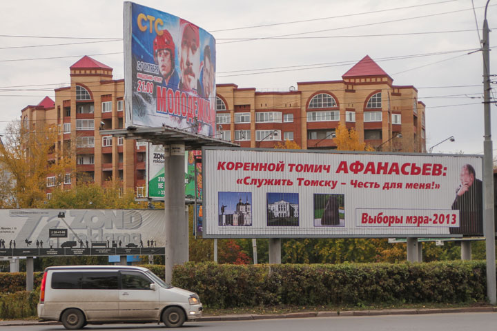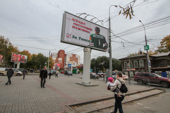 Особой оригинальностью агитация остальных претендентов не отличается. Афанасьев на билбордах называет себя «коренным томичом», Павлов рекомендует избрать «молодого мэра» и расставляет по городу «кубы», Казаков предсказуемо обращается к студентам. Фетисову, которого и так-то путают с более известным однофамильцем, политтехнологи зачем-то сделали плакаты с хоккейной темой и двусмысленной фразой «В Томск играют настоящие мужчины». А билборды Кляйна, как шутят томичи, цветом и шрифтом больше похожи на рекламу кофе Jacobs Monarch, чем на предвыборную агитацию представителя «Единой России».