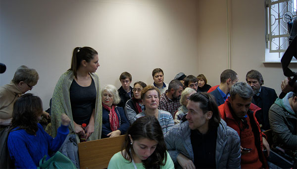 Оглашение приговора было назначено на два часа дня, но судья Людмила Москаленко приступила к своим обязанностям ближе к трем часам. К этому моменту зал суда уже был забит под завязку, люди "стояли на головах" друг у друга. На оглашении присутствовала известная правозащитница, руководитель Московской Хельсинкской группы Людмила Алексеева. Из-за возраста и физического состояния при оглашении ей разрешили сидеть.
