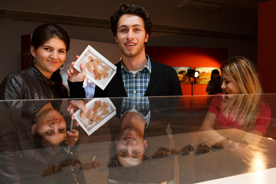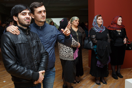 © Никита Шохов Фото предоставлено фондом «Пери» Собственно, об этой маскулинности в ироничном и при этом отсылающем к мифологической иконографии ключе — проект «Пейзаж». Деревянные макеты в форме «кавказских» носов, считающихся признаком мужественности, выстроились, как горная гряда. Забавно, как зрители реагировали на эту работу — обсуждали, какие из моделей похожи на их собственные носы. Вообще действия многочисленных зрителей, которых художница завлекла на выставку, наняв рыночных зазывал, кричащих «Выставка, выставка!», очень интересны. Несмотря на большое количество художников в Дагестане, многие из которых занимаются видео (например, Мурад Халилов или Мусай Гайворонский), видеоинсталляции — не самый привычный способ демонстрировать искусство для местных институций. Поэтому одна из первых реакций — танцевать в лучах проектора, что и проделывали дети, оказавшиеся на вернисаже. Характерно, что люди, связанные с искусством, довольно быстро разошлись по углам, тогда как внутри экспозиции собралась, как принято выражаться, широкая аудитория, непрофессиональные зрители. И это была первая большая победа, вторая же состояла в том, что Таус Махачева и куратор выставки Алексей Масляев, работая с залом, напоминающим мини-ЦДХ (в нем также проводятся выставки вроде «Золота России») и потому очень сложным для вдумчивого восприятия искусства, решили оставить достаточно свободного пространства. К сожалению (и в Москве это прекрасно видно), когда отечественным кураторам дают большое помещение, они пытаются полностью его использовать, если не сказать забить, словно от них этого настойчиво требуют, — вспомните небольшую комнатку, соседствующую с выставочным залом в ГЦСИ, которую, наверное, ни разу не могли просто закрыть, надо было обязательно что-то с ней делать, и зачастую не совсем удачно. Махачева и Масляев рисковали быть обвиненными в создании «полупустой» выставки, но вышло так, что это сработало им на пользу. Несколько фальшстен выстроились в ряд по форме традиционного узора на дагестанских коврах. Сами работы были составлены достаточно плотно по отношению друг к другу, а вокруг — затемненные пустоты, создающие не конфликт между выставочным залом и произведениями Таус, но своего рода воздушные и пространственные резервуары, позволившие зрителям «дышать» в густой атмосфере искусства.