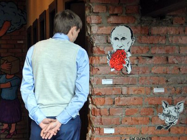 С выставки стрит-арта заставили убрать жующего мозг "Путина"