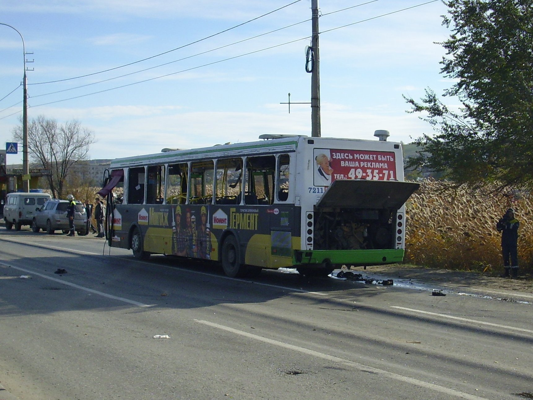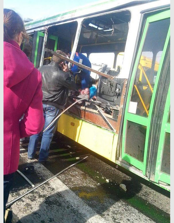Фото: censor.net.ua Первоначальной причиной взрыва считалась неисправность в одном из газовых баллонов, однако впоследствии эта версия отпала — автобус ЛиАЗ работал на дизельном топливе. Через некоторое время «Интерфакс» со ссылкой на Национальный террористический комитет сообщил, что взрыв в салоне автобуса произошел в результате детонации неустановленного взрывного устройства.