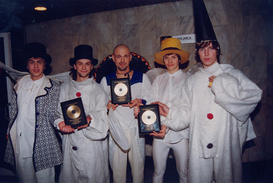 © Brainstorm Михельсонс: Мы тут нарядились в цирковые костюмы. Мы вообще раньше были большие оригиналы! : ) На самом деле это было специальное выступление на латышской музыкальной премии. Мы пели всего одну песню, поэтому так и вырядились. В тот день мы получили одну из своих первых наград в жизни… за песню. Вот только за какую? Вспомнить бы! Это 2000-е годы, и там было много урожайных песен. : )