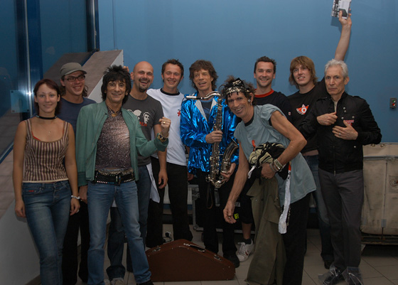 © Brainstorm Кауперс: Фото сделано уже после концерта. Наверное, это было одно из самых запомнившихся нам выступлений и самых масштабных по количеству зрителей. Их было, если я правильно помню, около 80 000 человек. Нам самим это очень помогло научиться выступать перед такими огромными аудиториями. А у Мика был день рождения, и мы ему так спонтанно решили подарить саксофон. Кстати, этим летом мы выступали на фестивале Glastonbury, как раз в один день с Rolling Stones. Мы с огромным удовольствием сходили на их сет. Удивительно, но за эти годы они мало поменялись. Такое ощущение, что парни все с теми же драйвом и удовольствием поют свои песни. Колоссальная самоотдача.