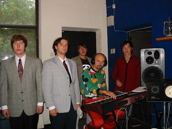 © Brainstorm Михельсонс: Вот тут начинаются провалы в памяти! Это мы в Сигулде. По-моему, тогда на студии мы записывали демо-версии нескольких своих песен. Ренарс точно писал вокал. Это тоже где-то начало 2000-х. Раньше мы всегда одевались кто как хотел, не сговариваясь заранее. : ) Видимо, в этот раз мы с Ренарсом заглянули в гости к парням, пока те трудились над своими партиями. Поэтому вид у них соответствующий — рабочий, а у нас — парадный.