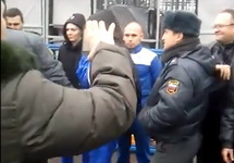 В то же время группа поддержки - активисты левых движений - собралась у проходной завода и попыталась заблокировать выезд с предприятия груженых фур. Полиция разогнала активистов с применением силы.