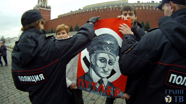 На Красной площади задержаны четверо участников антифашистской акции, сообщает корреспондент "Граней". Рэйда Линн, Никс Нэмени, Роман Петрищев и Ольга Мазурова вышли с плакатом "Путлер", чтобы выразить протест против погромов, избиений мигрантов, нападений на ЛГБТ. Сотрудники полиции потребовали свернуть плакаты и разойтись, активисты отказались. "Мы не хотим жить по фашистским законам!" - скандировали участники акции. По данным ОВД-Инфо, они доставлены в ОВД "Китай-город".