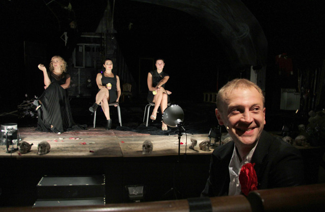 В программке режиссер предлагает свой перевод фамилии автора: не «потрясающий копьем», а «колеблющееся копье». Здесь не место спорить о достоверности перевода, но раз Бутусов предпочитает это слово — значит, оно ему зачем-то нужно. Оставим в стороне фрейдистские ассоциации, связанные со словом «копье». Скажем о другом и более существенном — о смысле слова «колеблющийся», которое многое определяет в философии спектакля, где люди погружены в мир всеобщей неопределенности, где размыты все понятия и все границы, то есть в тот самый смешной и страшный постмодернистский мир, в котором все мы живем. Однако — и в этом, пожалуй, все дело — режиссер не получает мазохистского удовольствия от пребывания в мировой бесцельности, а ненавидит ее, до смерти от нее устал. Поэтому на сцене не легкокрылый, слегка циничный и комфортно устроившийся в обессмысленном пространстве постмодернистский гротеск, а трагедия — редкая гостья на современных подмостках.