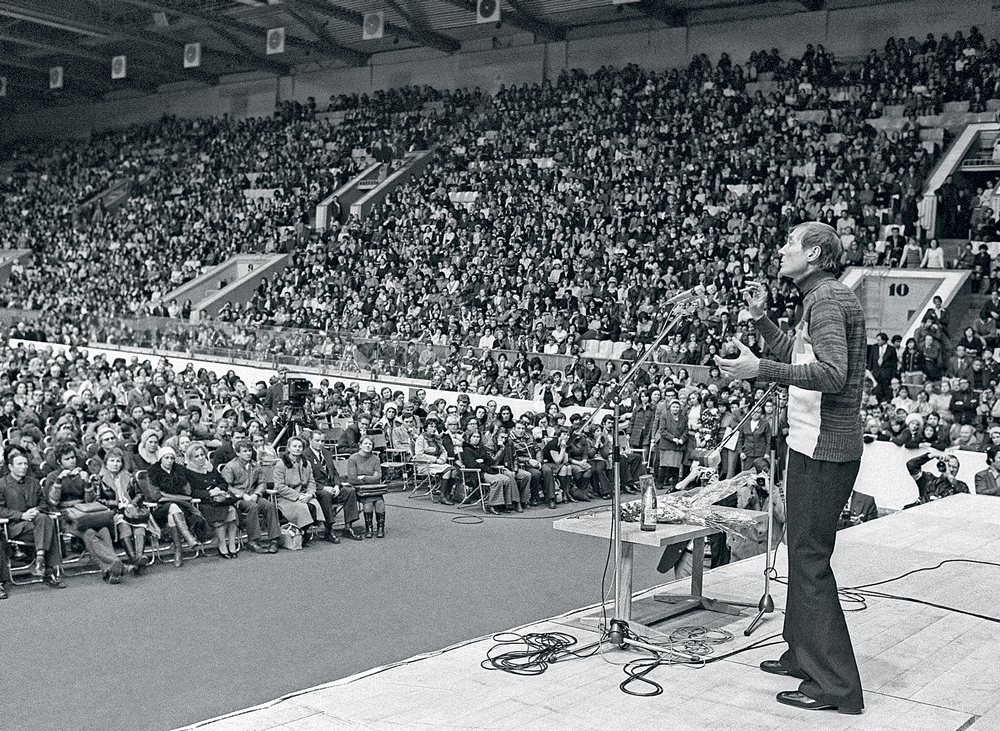 Евгений Евтушенко собирал стадионы в США, на Кубе, в СССР. На снимке — Москва, Лужники, 1976 г.