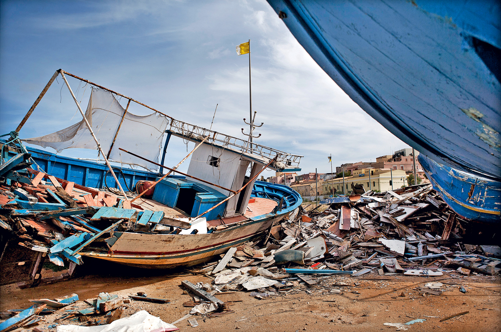 Несмотря на то что береговая охрана постоянно обвиняет рыбаков в «пособничестве нелегальной иммиграции», те продолжают чтить законы моря, предписывающие спасать любого, кто оказался за бортом. Ринго обводит рукой грустный пейзаж: до 2010 года все лодки иммигрантов сжигались как мусор, однако сейчас прямо рядом с портом посреди города устроена стоянка брошенных лодок, «кладбище». И это первое, что видят все, кто прибывает на остров: лодки похожи на огромные гробы, выброшенные на берег.