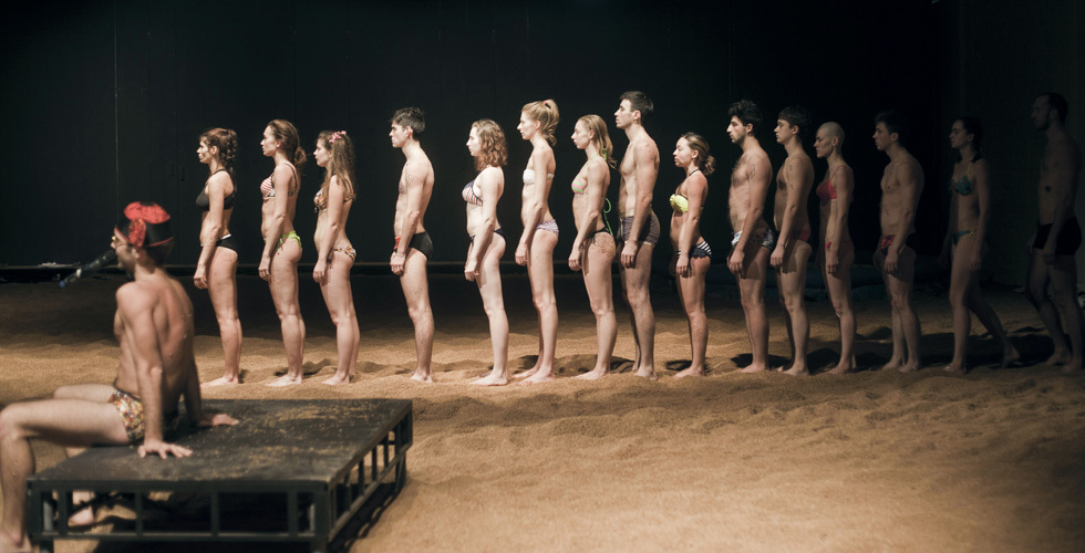 © «Платформа» Местом действия своего спектакля итальянские режиссеры сделали зачарованный остров чернокнижницы Альцины, на котором, предаваясь любовным утехам, несколько месяцев пронежился один из героев «Неистового Роланда» по имени Руджьер. Если для средневековых рыцарей такие секс-марафоны были скорее исключением и большую часть своего времени они все же отдавали суровым воинским ристалищам, то в XXI веке, по мысли Риччи и Форте, с героев спали и щиты, и доспехи. Актеры, набранные по кастингу для этого представления, оказались почти на сто процентов голыми. Будем считать, что на девяносто пять: плавки и купальники юношам и девушкам оставлены, да и те все время норовят сползти. «Вот мои доспехи», — говорит один из рыцарей, обнажившись в какой-то момент на все сто и указывая на оставленный при себе айпод. Главное — воткнуть что-нибудь в уши и отгородиться от внешнего мира непроницаемой музыкальной завесой. Неудивительно, что и в спектакле «100% FURIOSO» оптимистичное «тынц-тынц» звучит не умолкая. Чем громче, тем надежнее защита от проклятых сарацинов, угрожающих твоей безмятежности.