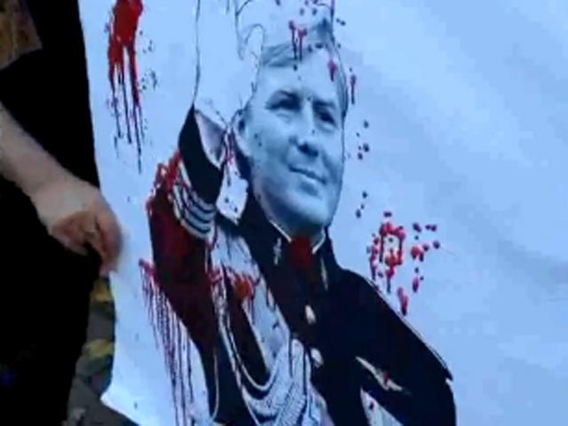 Члены "Другой России" атаковали в Лондоне посольство Голландии и вымазали "кровью" портрет короля Нидерландов (ВИДЕО)