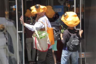 Около месяца назад поющие и танцующие адепты «Церкви Стоп-шопинга» в костюмах золотых жаб вошли в манхэттенское отделение банка LPMorgan Chase и раздали сотрудникам и клиентам банка листовки о вреде, который деятельность LPMorgan Chase наносит окружающей среде.