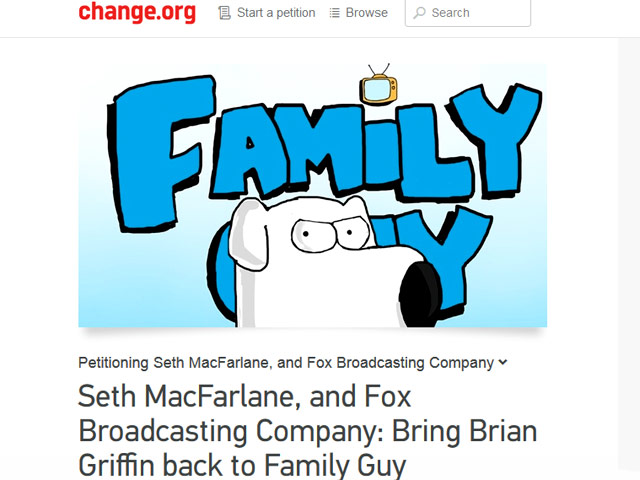 Поклонники мультсериала "Гриффины" собирают подписи за воскрешение пса Брайана