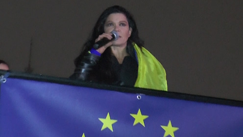 С призывом объединиться на Майдане, но без партийной символики к демонстрантам обратилась бывшая премьер-министр Украины Юлия Тимошенко, находящаяся сейчас в тюрьме: "Все, что мешает нашему абсолютному единству, должно быть немедленно убрано! Сделайте даже больше, чем требует общественный майдан. Нам нужен результат – Соглашение об ассоциации, а не процесс партийных соревнований".