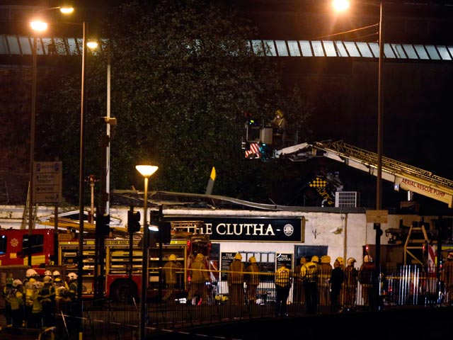 На крышу паба "Клута", расположенного на берегу реки Клайд в центре города, упал полицейский вертолет Eurocopter EC135 T2. По словам очевидцев на месте происшествия, в момент падения вертолета в переполненном заведении находилось около 120 человек. На борту вертолета находились два офицера полиции и гражданский пилот, передает ИТАР-ТАСС.