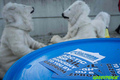 У отеля President Wilson, где проходит мероприятие, активисты разбросали искусственный снег, расставили баррели с логотипами "Газпрома" и разлили нефть. На фоне этого антуража сели их товарищи в костюмах белых медведей. Одновременно другие активисты вывесили с крыши здания растяжку с надписью на английском языке "Нефтедобыча в Арктике. Куплено для тебя "Газпромом".