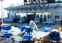 Еще несколько экозащитников, одевшись официантами, зашли в отель и начали раздавать коктейль под названием "Черный лебедь" - густую черную жидкость, в которой плавали фигурки белых медведей. Выражение "черный лебедь" - профессионализм, обозначающий разлив нефти.