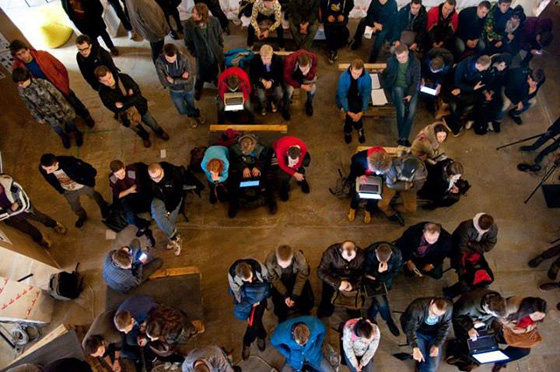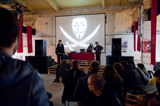 Вообще в этом большом двухэтажном зале присутствовал дух андеграунда и расколбаса. Произошло много интересных и полезных событий: помимо дискуссий у нас прошли, например, первая в Москве «Криптовечеринка» или перформанс «Семь злых поэтов» (1, 2). Но уровень внутреннего взаимодействия был все-таки недостаточным. Стало ясно: чтобы фестиваль стал общим делом, его нужно перепридумать сообща. Фрагментарно возникающие по его краям встречи и новые связи должны еще сложить сообщество, чтобы подчинить его контриерархичной динамике всю координацию действий. А дрессуру наемного труда еще только должна заменить самодисциплина горизонтальных отношений. Пока же маршрут от институции к коммуне едва ли может быть даже представлен, настолько он кажется утопичным.